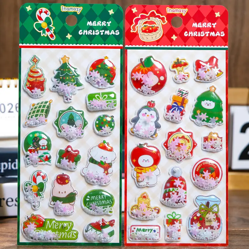 New Christmas Series snowflake quicksand 3D Stickers Christmas Tree apple phone Case refrigerator DIY Decorative Stickers Toys $1.48