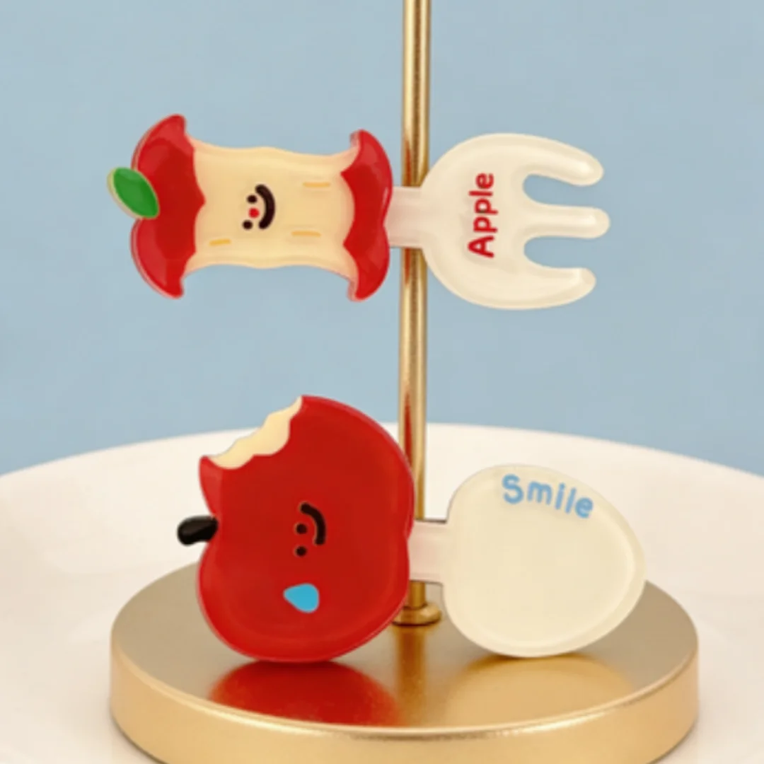 2-Piece Apple Fork and Spoon Hair Clip Set, Cute Cartoon Acrylic Hair Clips, Sweet and Versatile Bangs Clips, Creative Hair Clip $0.96