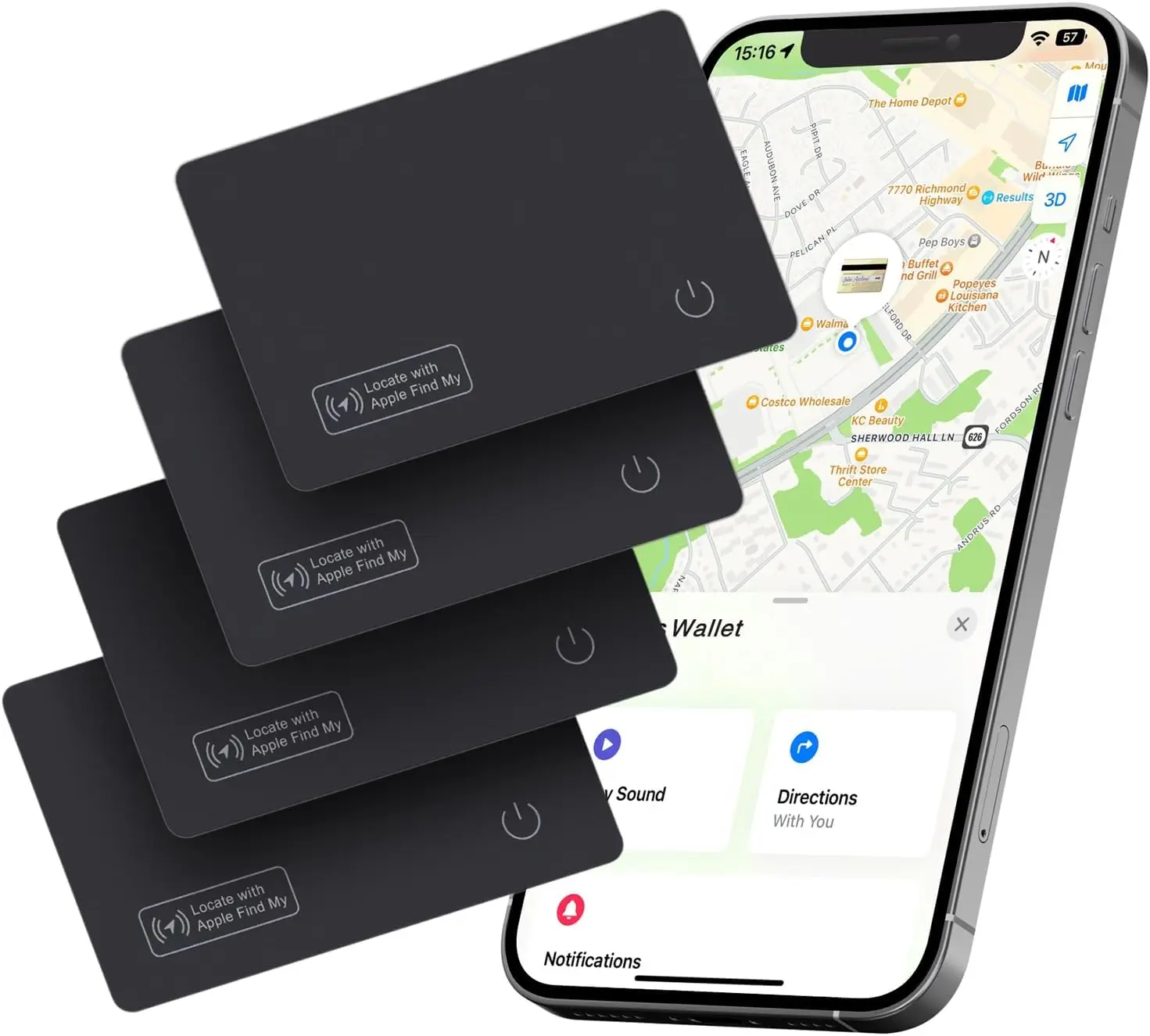 Rechargeable Thin Wallet Tracker Card, Works with Apple Find My (iOS Only), IP68 Waterproof, 4 Pack $48.81