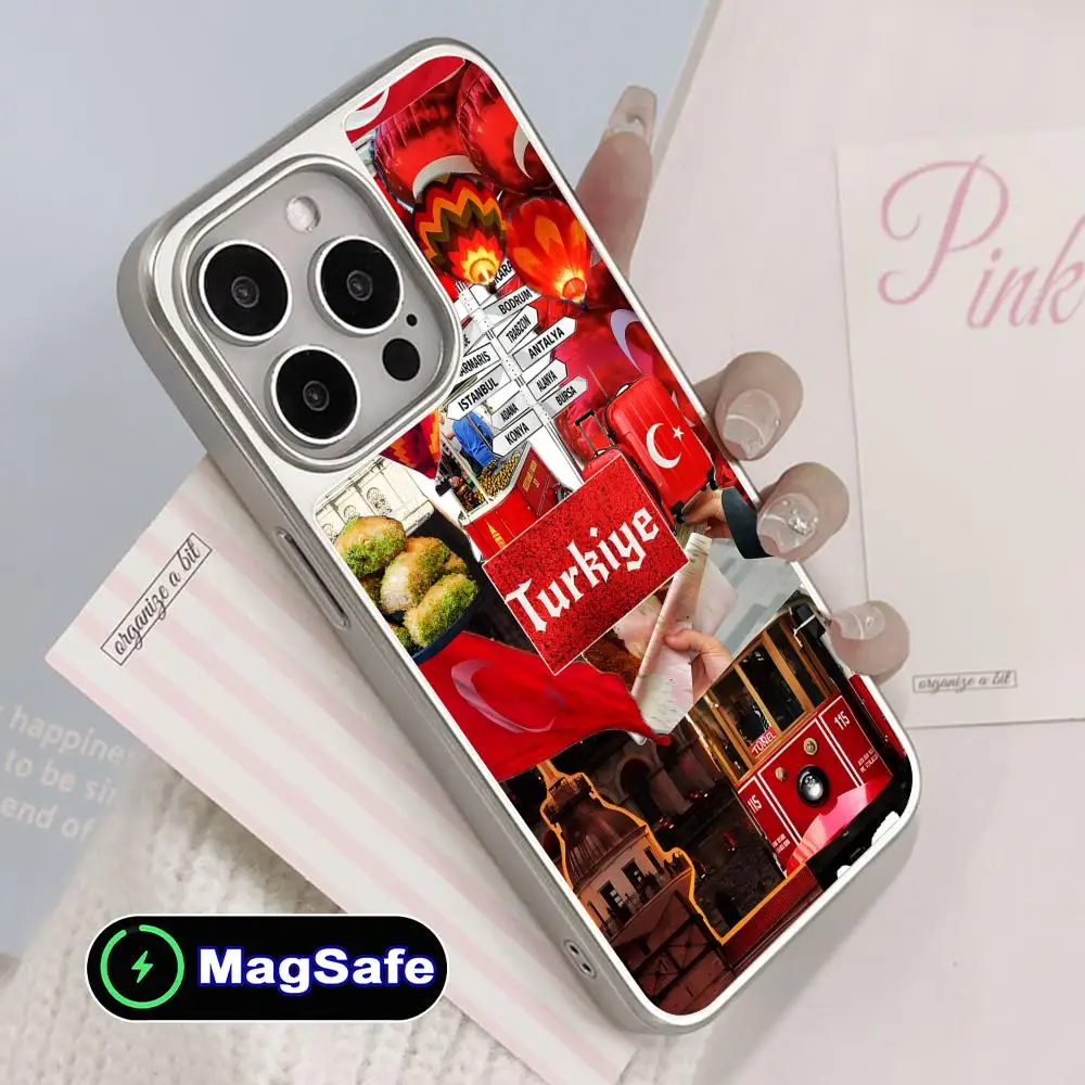 Turkey Flag Mobile Cell Phone Case for iPhone 17 16 15 14 13 12 11 Air Pro Max Plus Magsafe Silver Plating Colorful Cover Cover $5.37