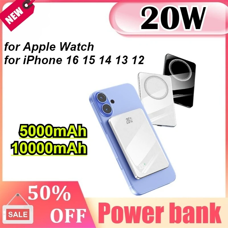 10000mAh Ultra Slim Magnetic Wireless Power Bank Portable Mini Spare Battery for Apple Watch for iPhone 16 15 14 13 12 $25.39