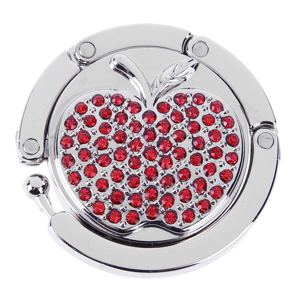 Foldable Backpack Hanger Multi-Function Rhinestone Apple Under Desk Clamp J Hook Heavy Duty Metal Table Hook for Home School $6.94