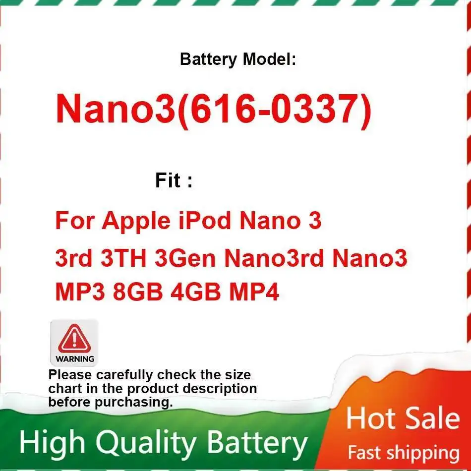 For Apple Ipod Nano 3 3Rd 3TH 3Gen Nano3rd Nano3 MP3 8GB 4GB MP4 High Capacity Mp4 Battery 370Mah 616-0337 High-Quality $11.30