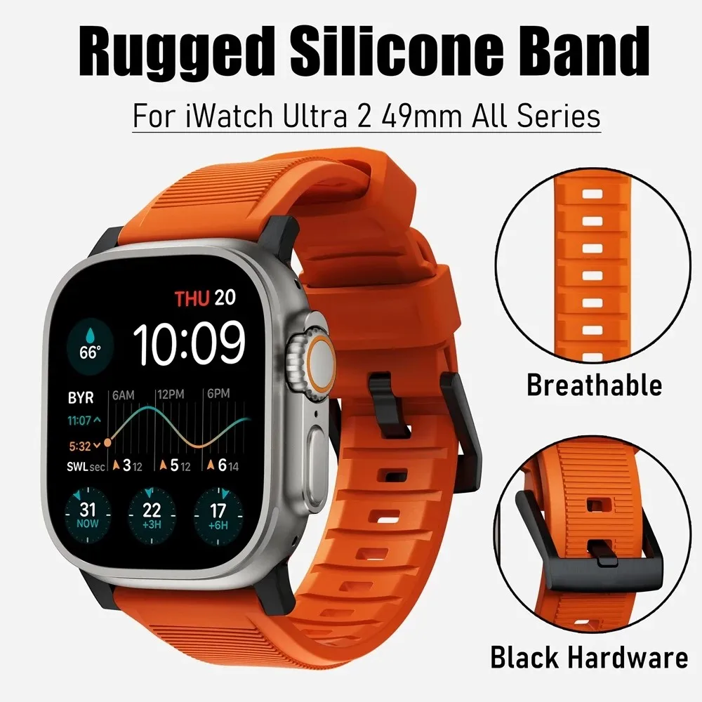 Silicone Strap for Apple Watch Ultra 3 49mm Series 11 10 46mm 45mm Sport Band with Metal Connector for Series 10 9 8 7 6 5 SE 3 $6.33