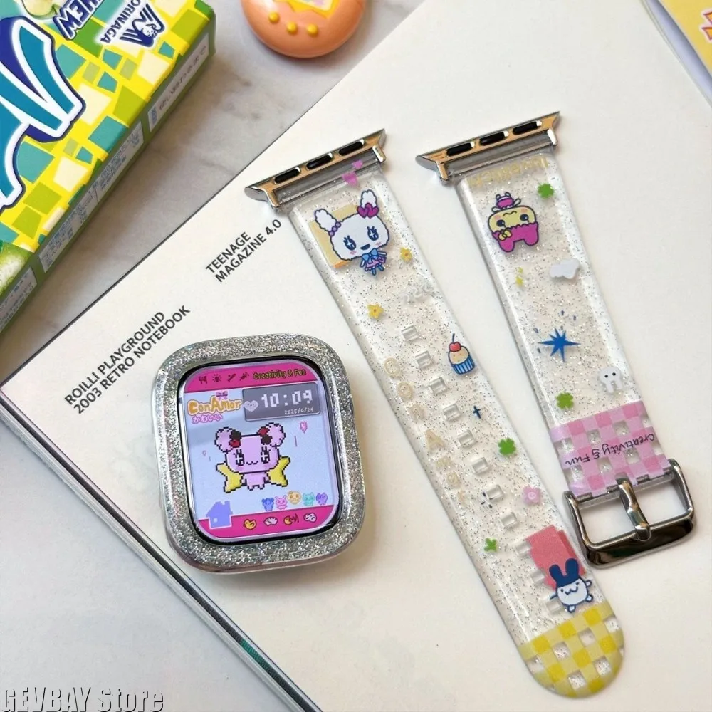 Tamagotchi Matte Sparkling Pink Strap Cute Transparent Iwatch Strap Case Suitable for Apple Watch Decorative Accessories $14.80