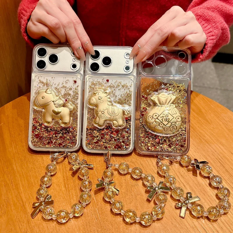 New Year 3D lucky bag is ready for money suitable for Apple 17 Pro Max phone case iPhone 16 plus 15 Pro gold foil quicksand $2.38