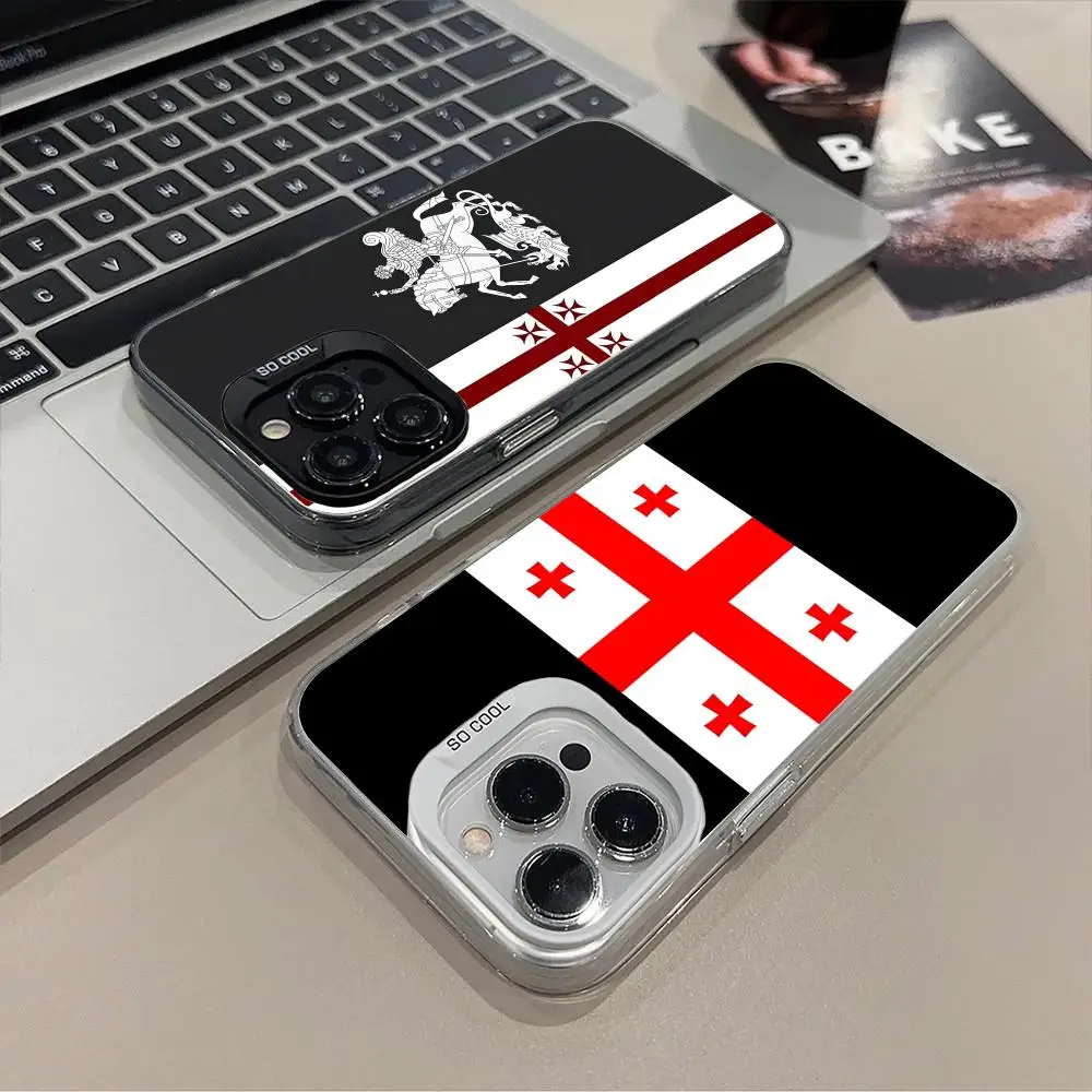 Georgia Flag Mobile Cell Phone Case for iPhone 17 16 15 14 13 12 11 X XR XS 8 7 Pro Max Plus Translucent Colour Cover Pretty $5.64