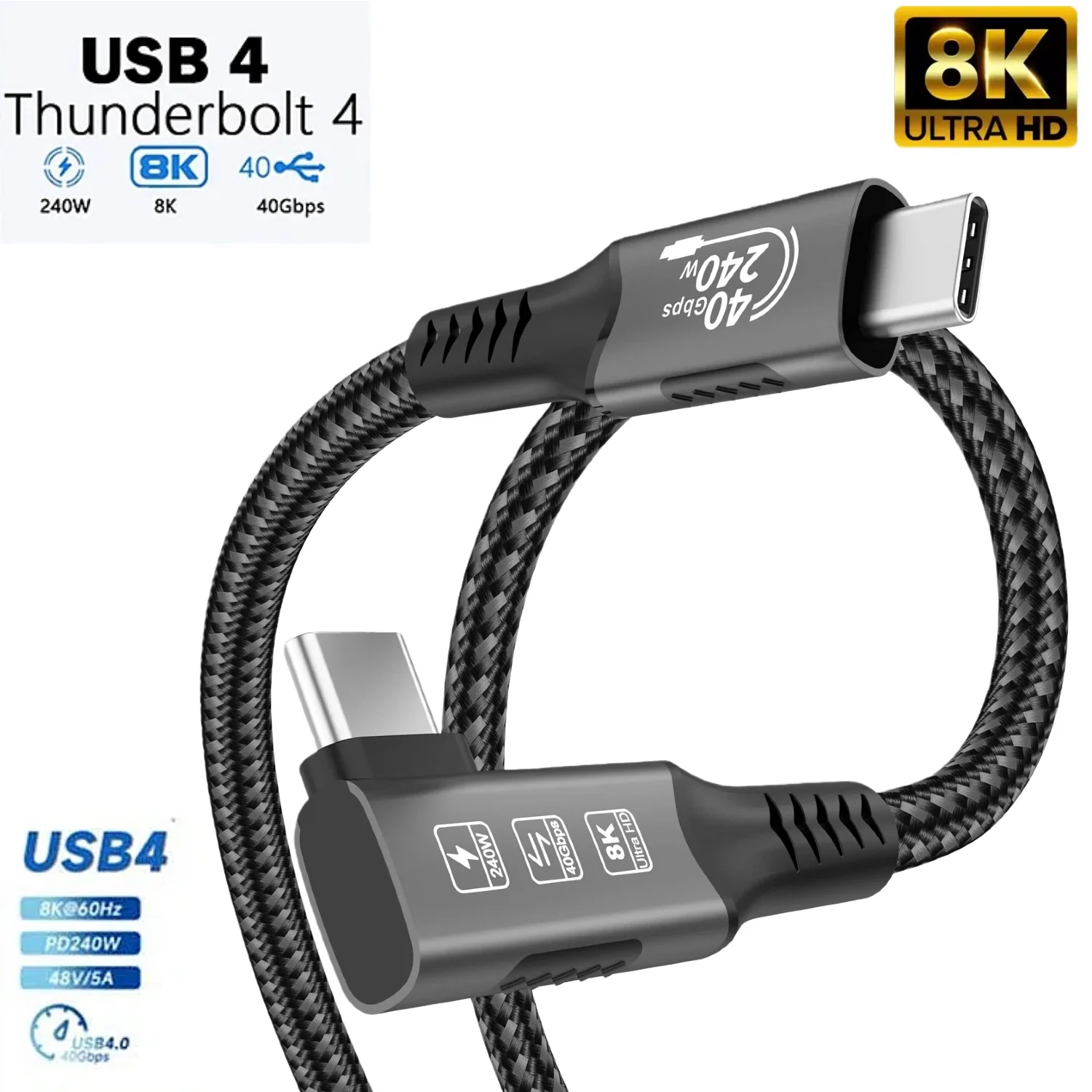 240W Fast Charging Cable USB4 Type C Cord 8K 60HZ 40Gbps Full Function Compatible For Thunderbolt 3 4 Apple iphone15 Pro Max $3.14