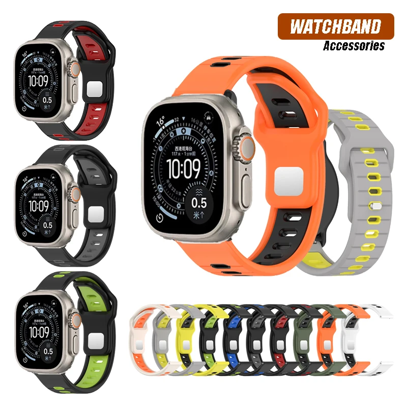 TWO-Color Sports Outdoor Running Silicone Strap For Apple Watch Ultra 49mm iWatch Series 11 10 9 8 7 SE 38 40 41 42 44 45 46 mm $3.57