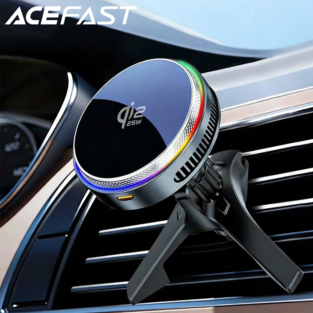 ACEFAST Qi2 25W Magnetic Wireless Car Charger Air Cooling Magnetic RGB Light Phone Holder with Car Lighter Charger For iPhone 17 $32.21