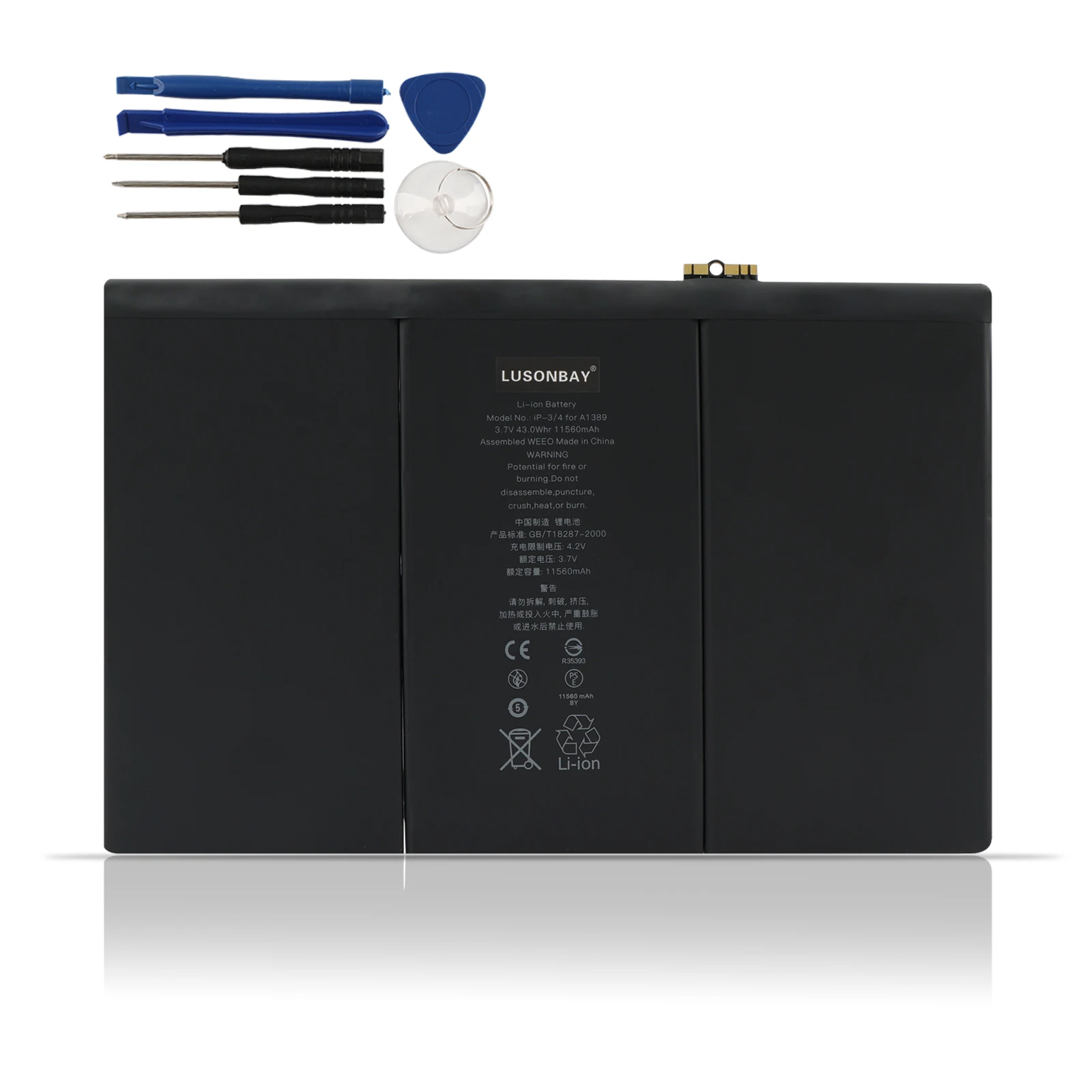 LUSONBAY A1389 Tablet Battery For Apple iPad 3 & iPad 4 A1403 A1416 A1430 A1458 A1459 A1460 3.7V 11560mAh 43Wh $28.02