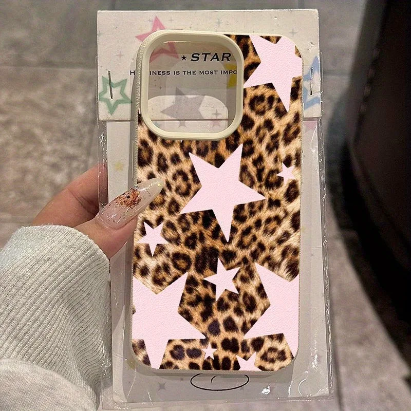 Pink Star Leopard Print TPU Pattern Silicone Phone Case For iPhone 17 16 15 Pro Max 14 13 12 11 XS X XR 16E 16 Plus 17 Air Cover $3.14