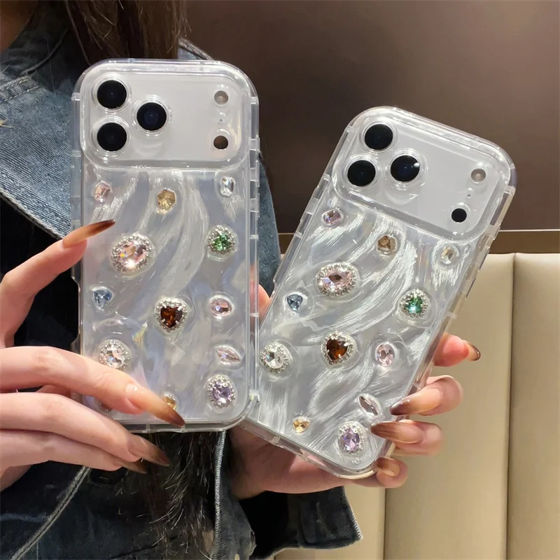 Korean Color Gemstones Resin Cute Phone Case For iPhone 17 Pro 16 15 14 Pro Max Shockproof Cases For Apple 17 Promax Cover Funda $7.95