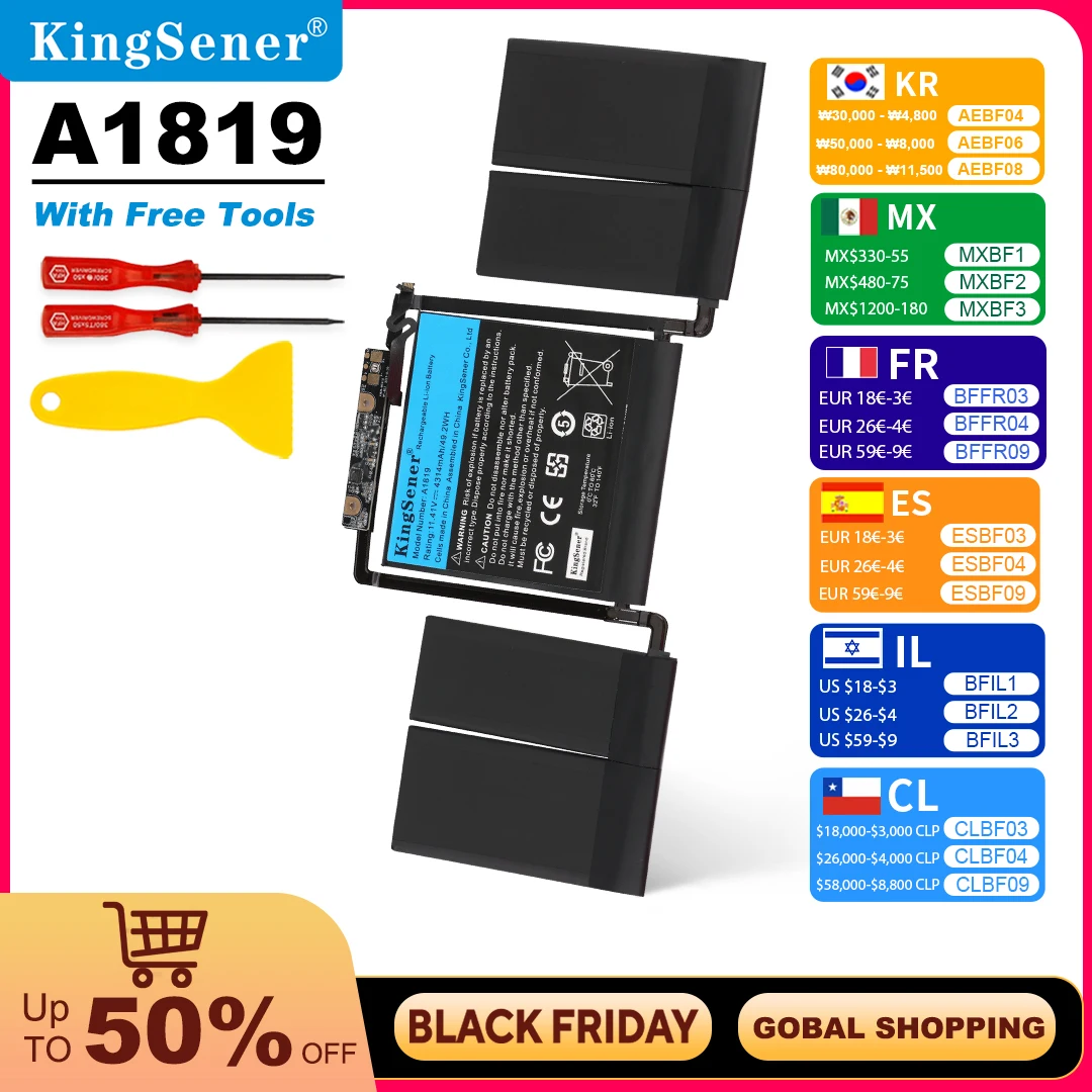 KingSener A1819 Battery for Apple MacBook Pro 13'' Touch A1706 (Late 2016 Mid 2017) EMC 3071 EMC 3163 MLH12LL/A MPXV2LL/A 49.2WH $35.90