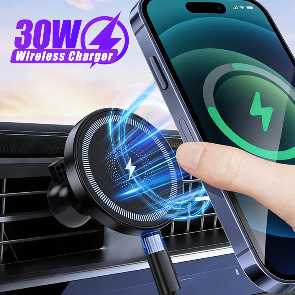 Magnetic 30W Wireless Car Charger Air Vent Phone Holder Stand For iPhone 17 16 Pro Max 15 14 13 Fast Charging Cellphone Bracket $6.95
