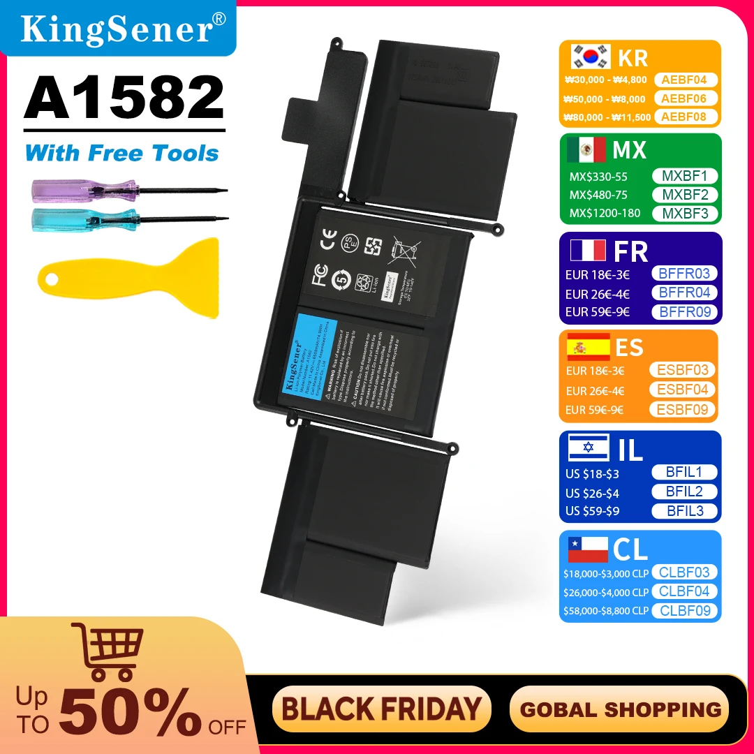 KingSener A1582 A1493 Laptop Battery For Apple MacBook Pro 13" Retina A1502 2013 2014 2015 Year 020-00010 Free Tools 500+ Cycles $33.91