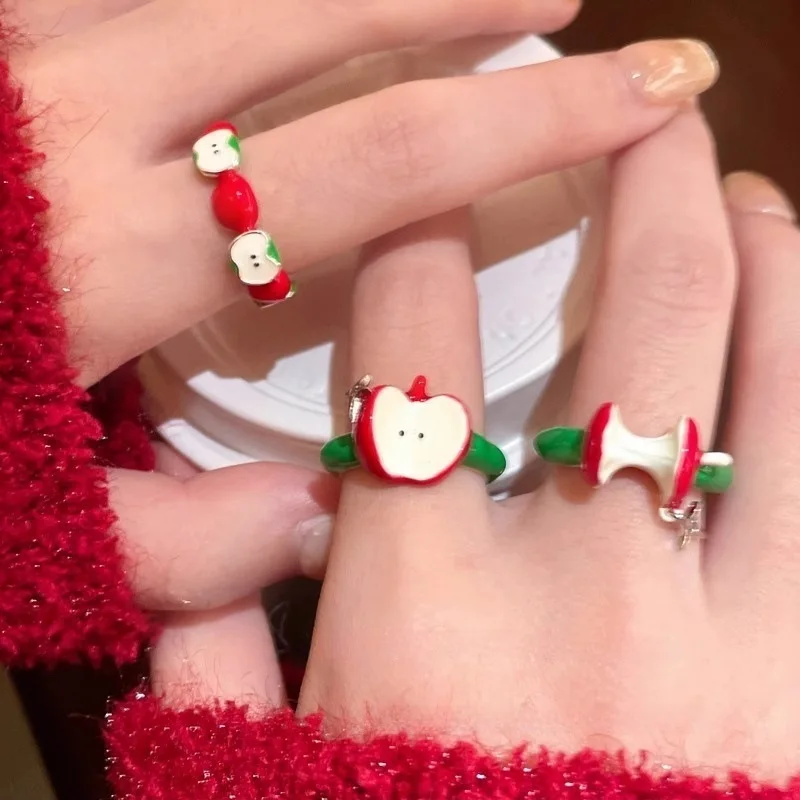Cute Dopamine Apple Rings for Women Girl Creative Opening Adjustable Oil Drop Finger Rings Jewelry Acceessries Gift $1.76