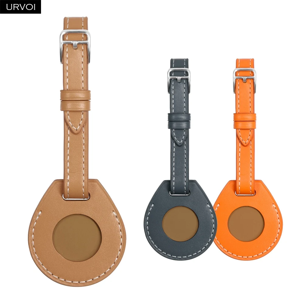 URVOI Leather Luggage Tag for Apple AirTag Protective Cover Location Tracker Case locker Secure Holder swift leather belt $2.22