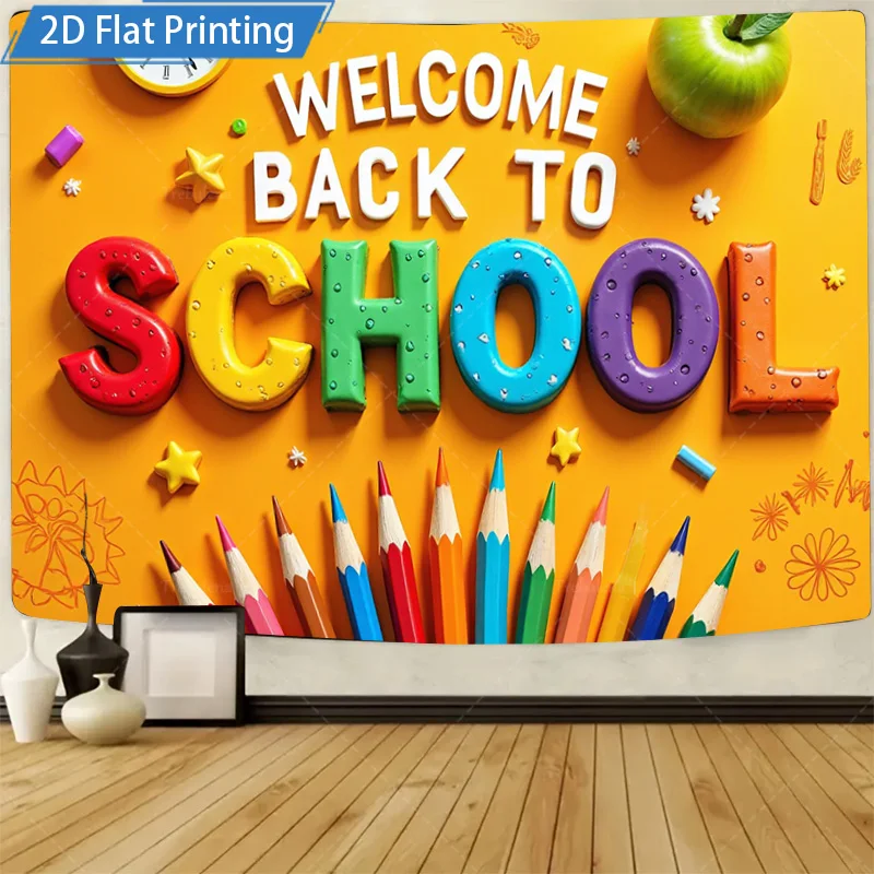 1pc Wall Tapestry Welcome Back to School 3D Wall Hanging Tapestry, Colorful Pencils & Apple Design $11.46