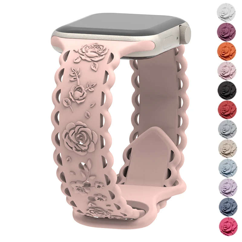 Strap For Apple Watch Band 44mm 42mm 41mm 40mm 45mm 49mm 46mm Floral Engraved bracelet correa iwatch series 10 9 7 SE 6 8 Ultra $19.16