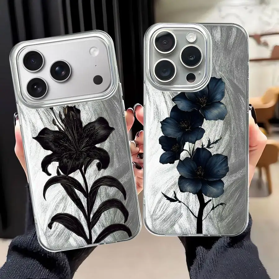 Soft Cover Phone Case for Apple iPhone 14 13 Pro Air 16 12 14 Plus 17 pro max 15 16e 11 Black Flower Art $4.27