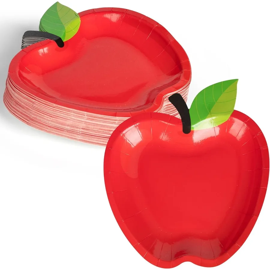 50Pcs Apple shaped paper plates Back to school decorations First day of school red apple paper plates Disposable tableware for $27.48