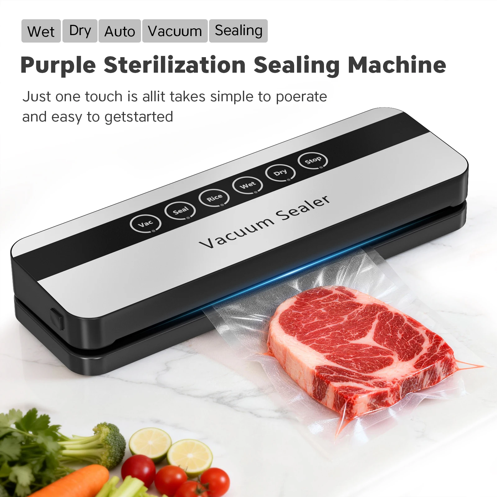 Automatic vacuum sealing machine for food storage - including 10 bags, with dry/wet mode function, a small kitchen appliance $26.15