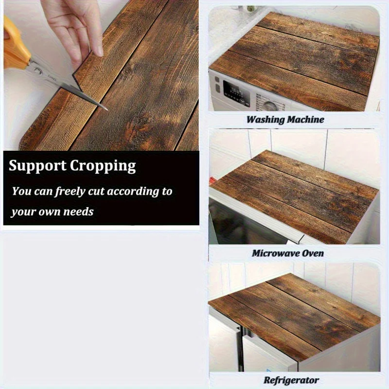 VIKAMA Vintage Wood Grain Appliance Protector Mat, Waterproof Non-Slip Washer & Refrigerator Cover Retro Kitchen Pad Home Decor $8.07