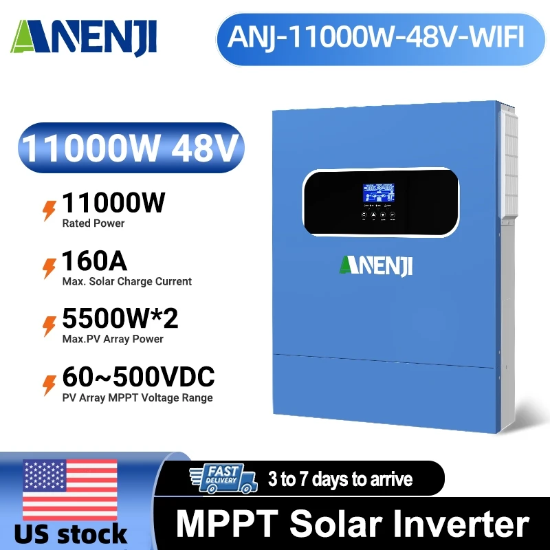 ANENJI 11KW Solar Inverter 48V High Power Off / on Grid Inverter 230VAC Dual PV Input Built-in 160A MPPT Solar Charge Controller $620.09