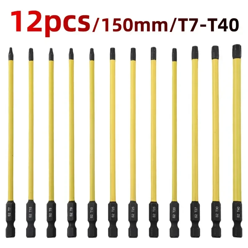 12pcs 150mm Screwdriver Bits Set T7-T40 1/4 Inch Hex Shank Magnetic Screwdriver Drill Bit For Household Appliances/Power Tool $6.89