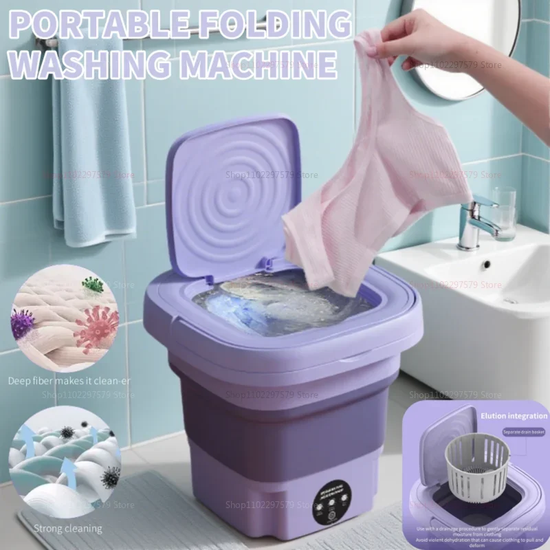 8L Folding Washing Machine Portable Mini Dehydratable Dormitory Student Socks Underwear Panties Home Appliance Free Shipping $38.63