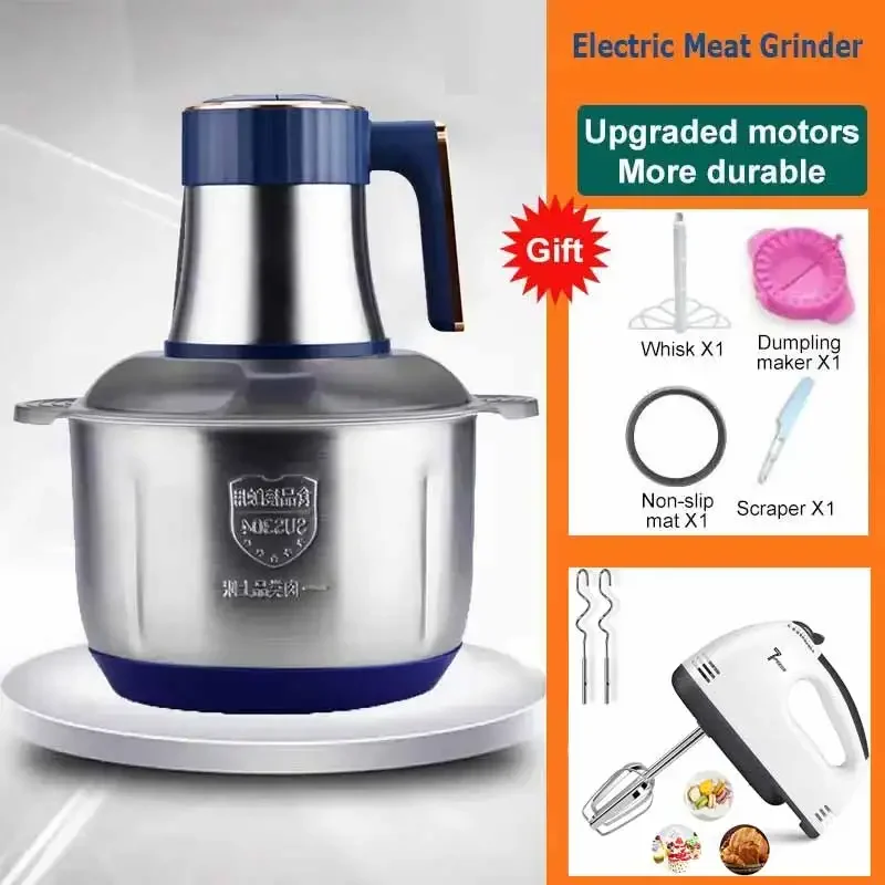 Electric Meat Grinder Stainless Steel Food Processor Fast Meat Mincer Fruits Nuts Vegetable Chopper Slicer Kitchen Appliance $67.19