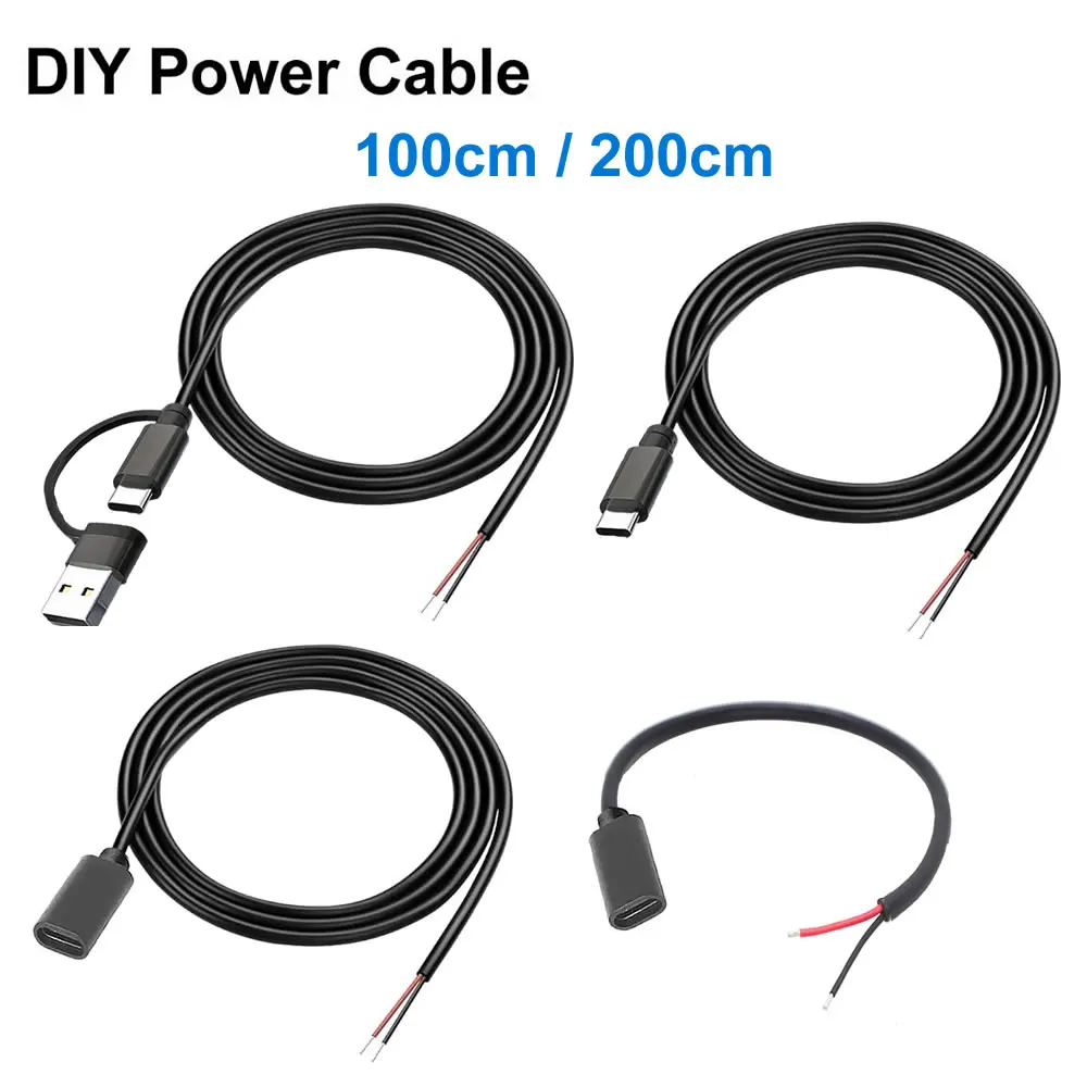 DC 2 Pin Power Cable USB and Type C Male Female to 2 Core Extension Cord For 5V Equipment Installed DIY Replace Repair appliance $3.73