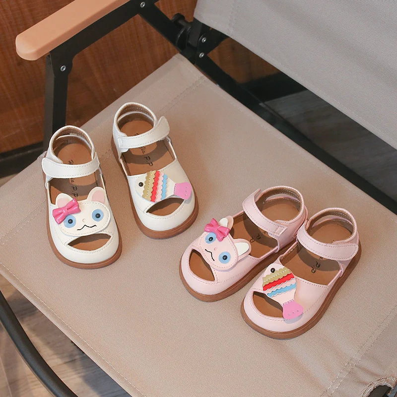 New Summer Kids Sandals For Girls Leather Cuts-out Children Sandals Cute Cat Protect-toe Soft Sole Fashion Toddler Baby Shoes $5.26