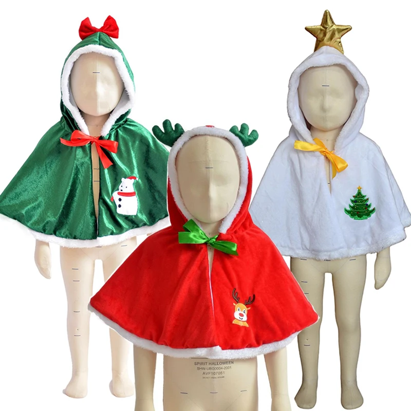 Green Little Snowman Hooded Cape Santa Claus Cosplay Infant Boy White Christmas Tree Cloak Toddler Baby Girls Christmas Poncho $21.97