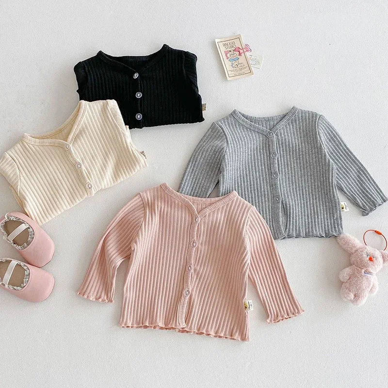 2025 New Autumn Infant Baby Cardigan Long Sleeved Solid Color Cotton Toddler Baby Girl Cardigan Coat 0-3Yrs Children Clothes $9.15