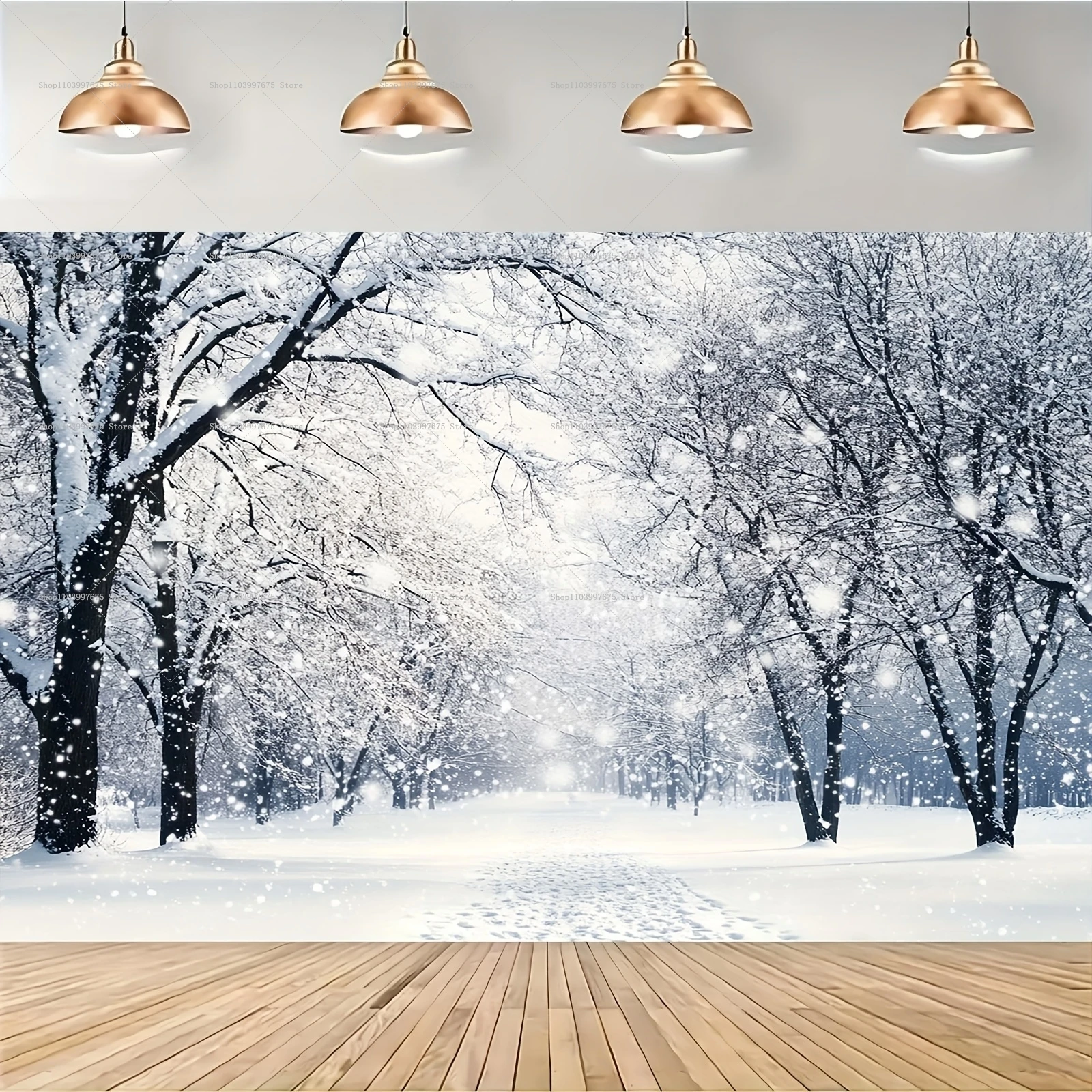 Snowy Forest Christmas Backdrops Xmas Party Decor Photography Background Baby Shower Banner Photo Booth Props Party Supplies $7.95
