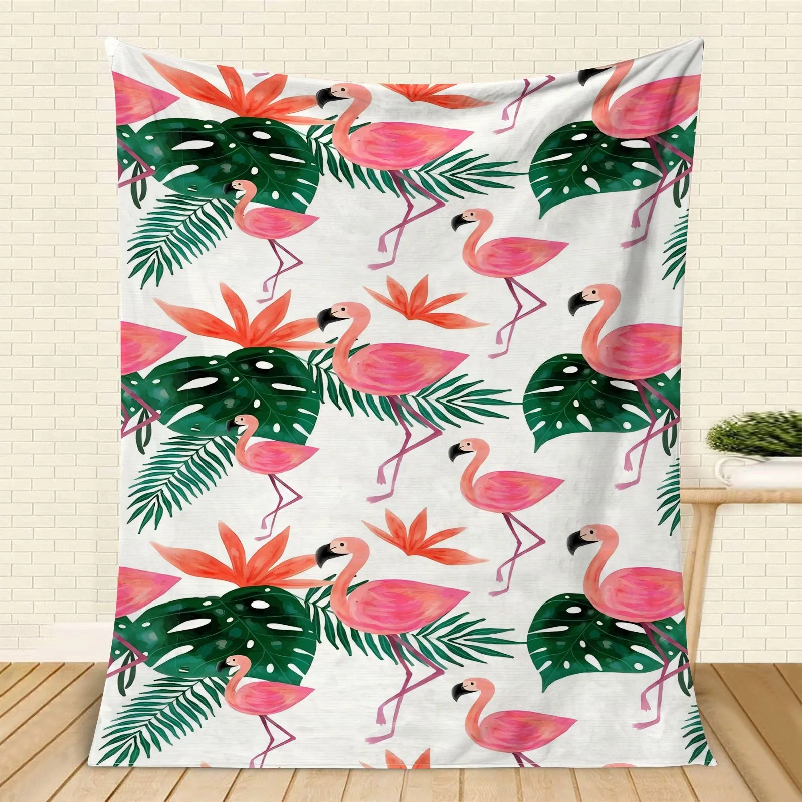 1pc Flamingo and tropical leaf patterned blanket, polyester fabric, machine washable, suitable for bedroom and living room décor $19.09