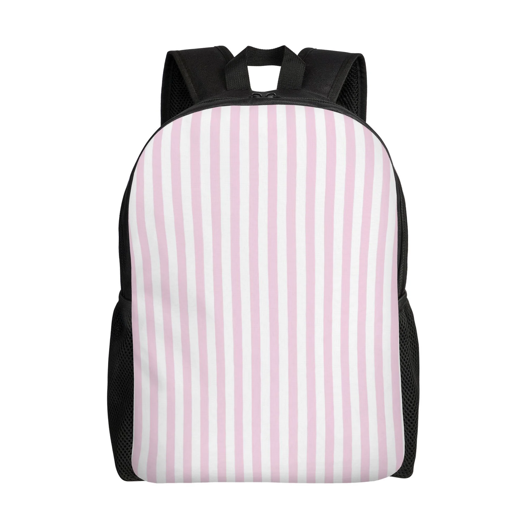 Minimalist backpack with baby pink and white striped summer pattern design and single compartment design for a clean $4.80