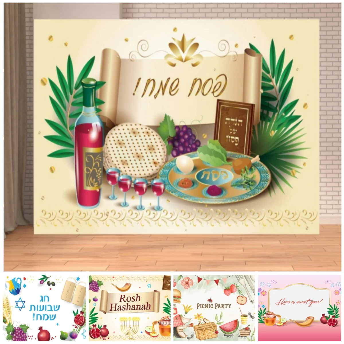 Happy Purim Festival Backgrounds Jewish New Year Fruit Meat Bread Home Party Baby Birthday Party Decor Backdrop Photo Studio $3.84