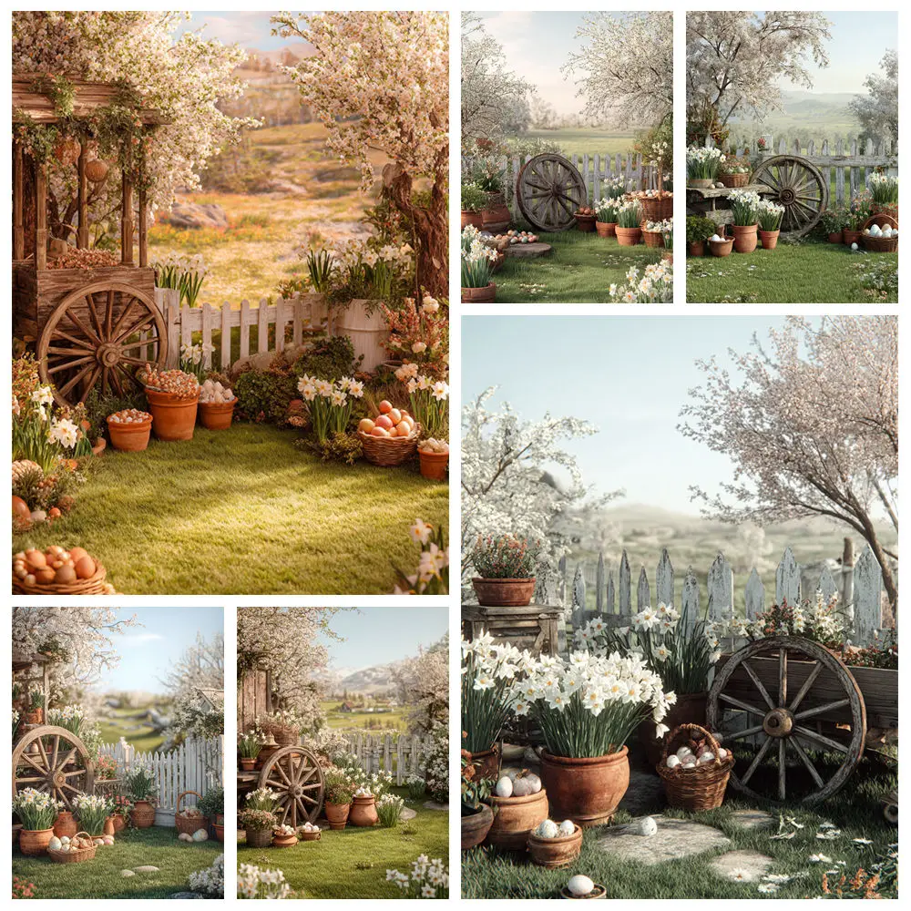 Spring Easter Photography Backdrop Flower Cart Easter Eggs Flower Plant Baby Shower Kids Birthday Party Decor Photo Background $4.90