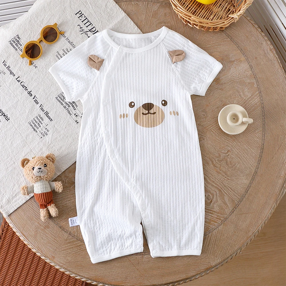 New Summer Baby Cute and Fun Teddy Bear Printed Short Sleeved Jumpsuit Baby Pure Cotton Breathable Jumpsuit Crawling Suit $7.82