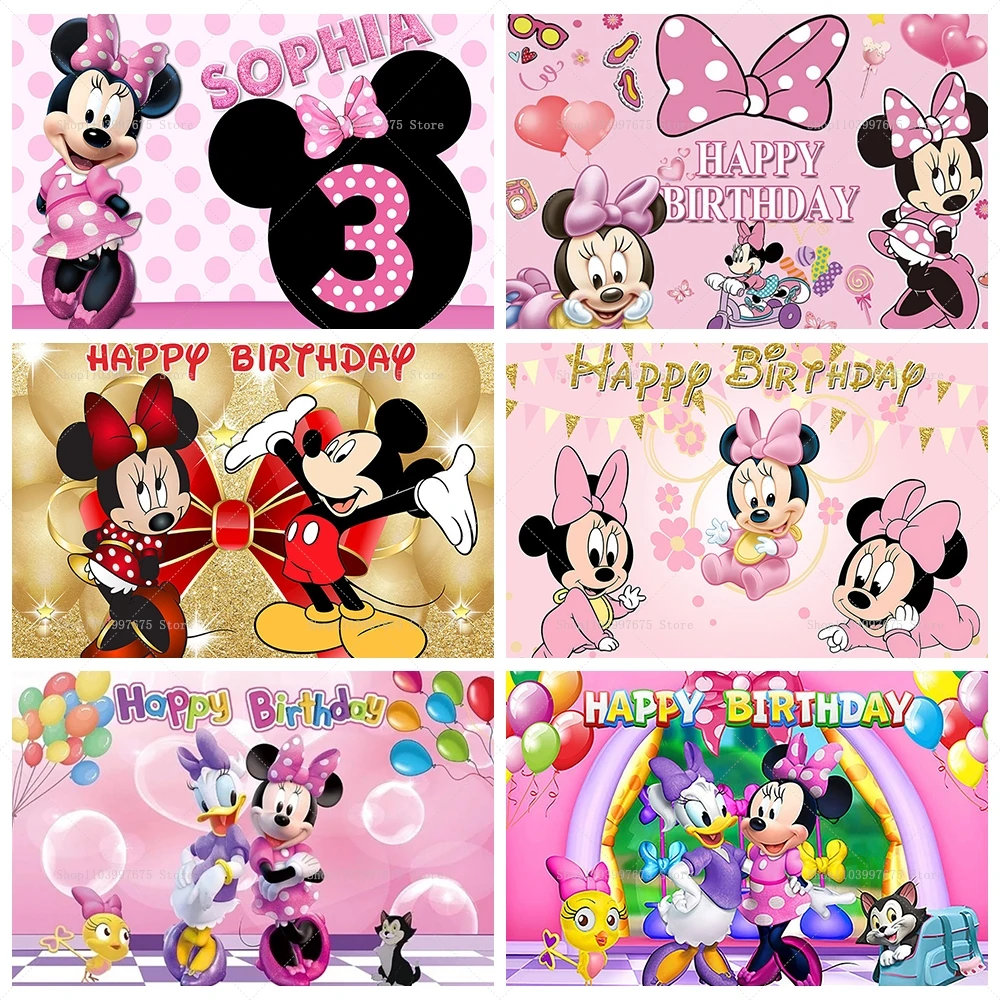 Cartoon Mouse Minnie Party Photography Backdrop Girls Birthday Baby shower Decor Background Vinyl Printing Banner Photo Studio $8.12