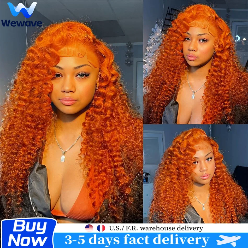 Wewave Curly Wig Human Hair Wigs 13x6 Deep Wave Wigs Water Wave 350 Ginger HD Lace Wig 200% Density Pre Plucked Baby Hair $29.74