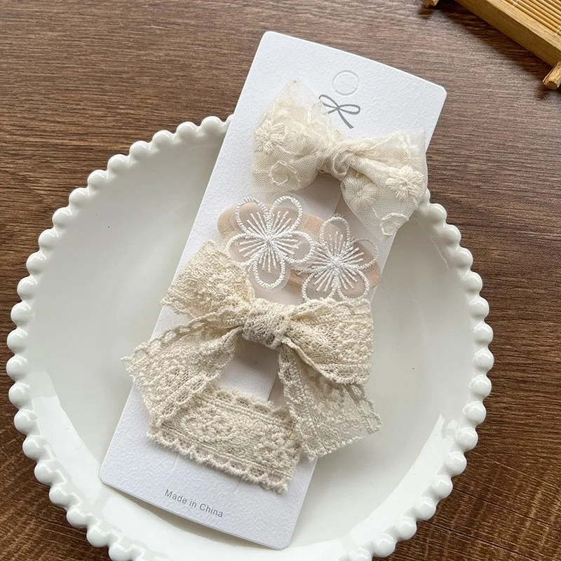 Non-Slip Baby Hair Accessories Set of 4 Lace Fabric Bows with Flowers Soft Elastic Clips for Toddler Girls Hypoallergenic Daily $1.60
