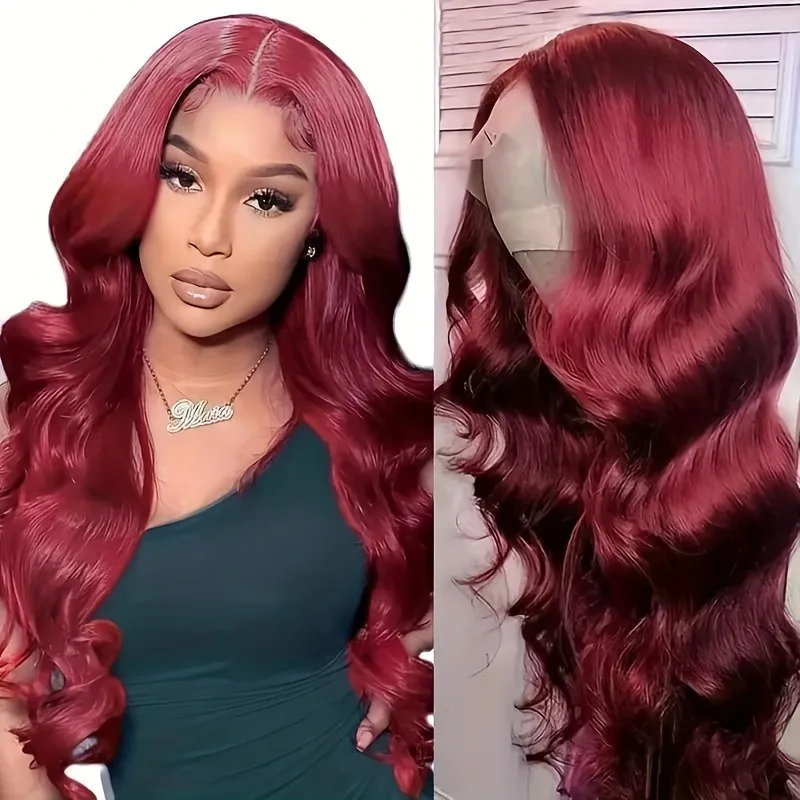30Inch 99j Burgundy Lace Front Wigs Human Hair Pre Plucked with Baby Hair 200% Density 13X4 Red Body Wave Human Hair Wigs $58.65