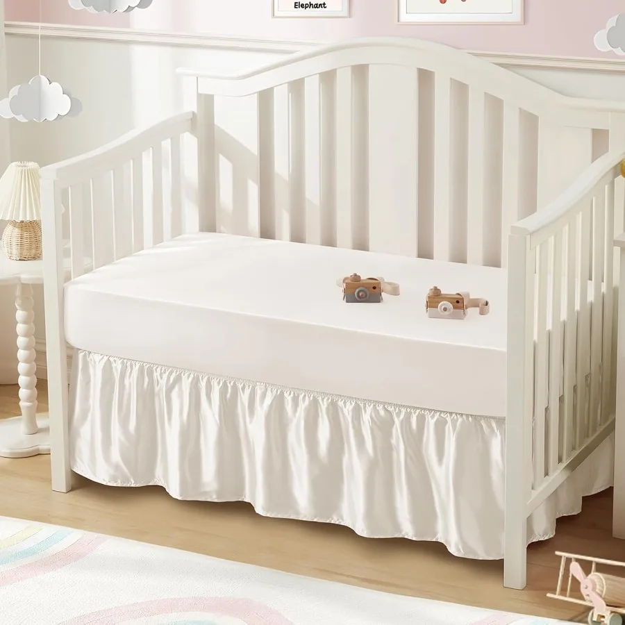 2Piece Set Satin Crib Sheets Crib Bed Skirt 52 x 28 Silky Soft Ruffled Baby Crib Skirt with Adjustable Elastic 14 Drop Perfect $28.69