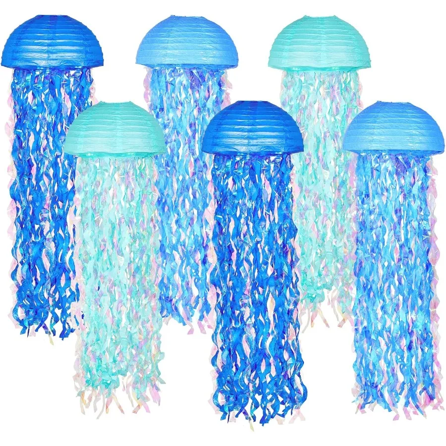 10 Blue Hanging Jellyfish Paper Lanterns for Under The Sea Party Decorations Mermaid Birthday Themes Baby Shower Accents Nautic $26.73
