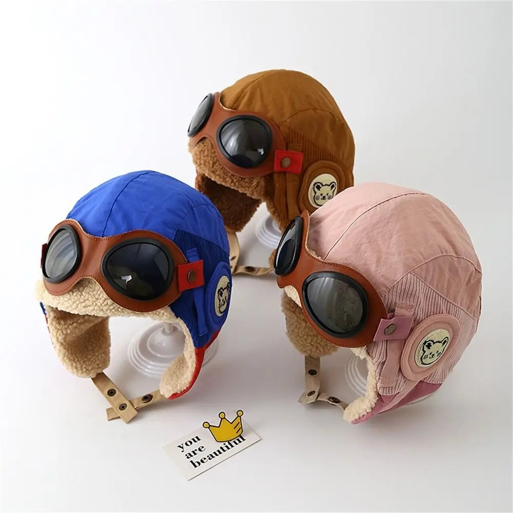 New Cute Cartoon Pilot Hat Windproof with Glasses Ear Protection Cap Cold Proof Thickned Warm Hat Children $7.48