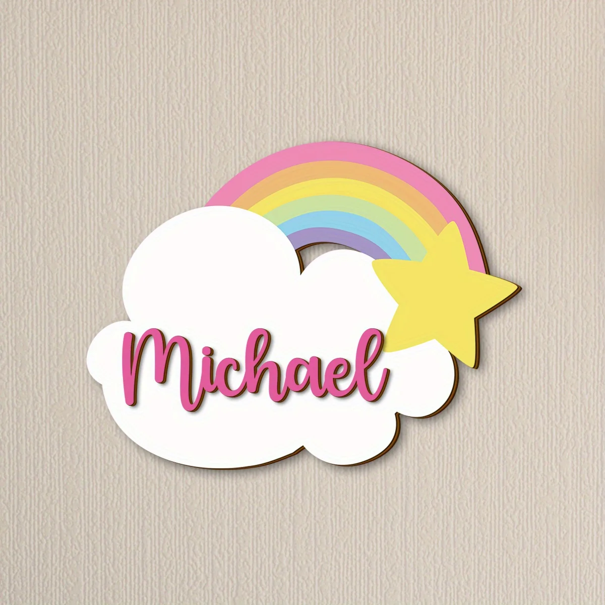 Custom-Made Rainbow Wooden Name Sign with a Two-Layer Design, Showcasing Gentle Cloud And Rainbow Motifs, Ideal for Decorative S $11.25